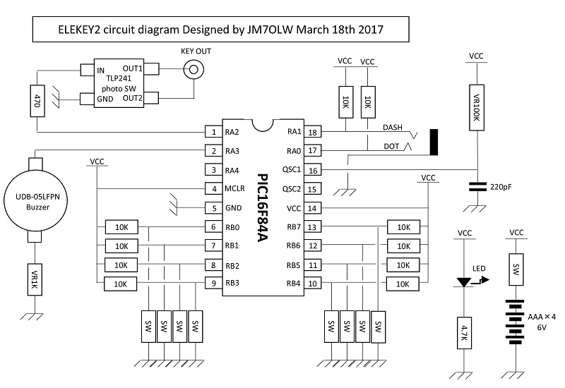 home brew electric keyer with PIC16F84A.